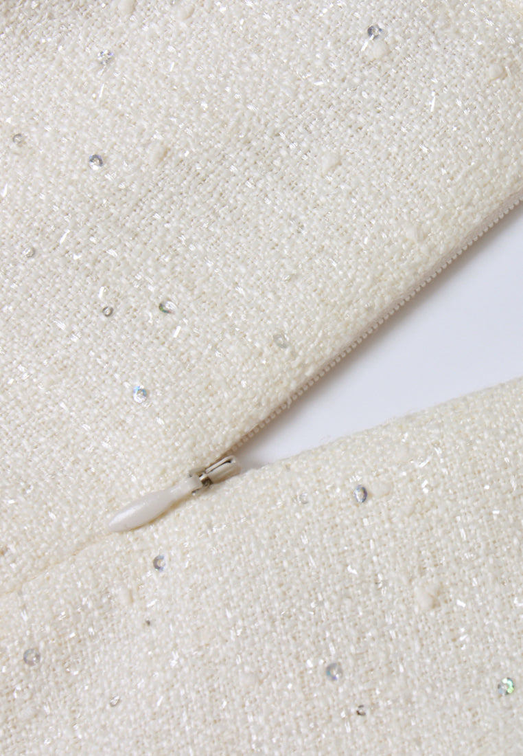 Flower-Motif Embellished Tweed Dress