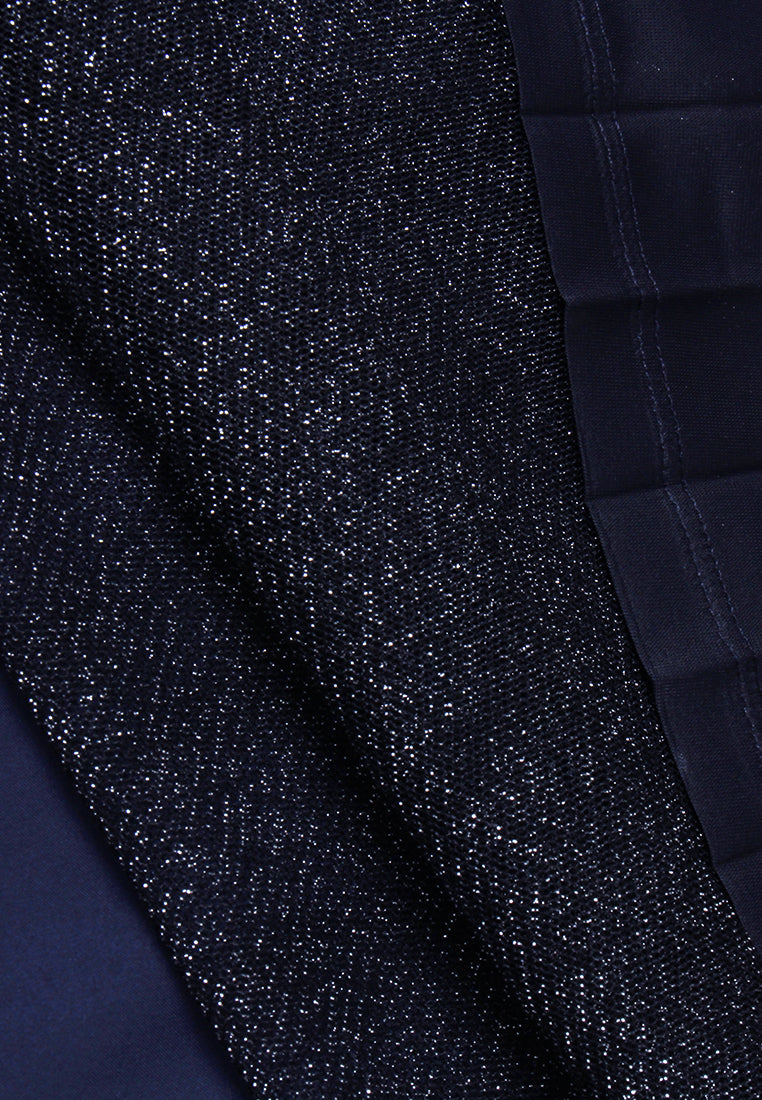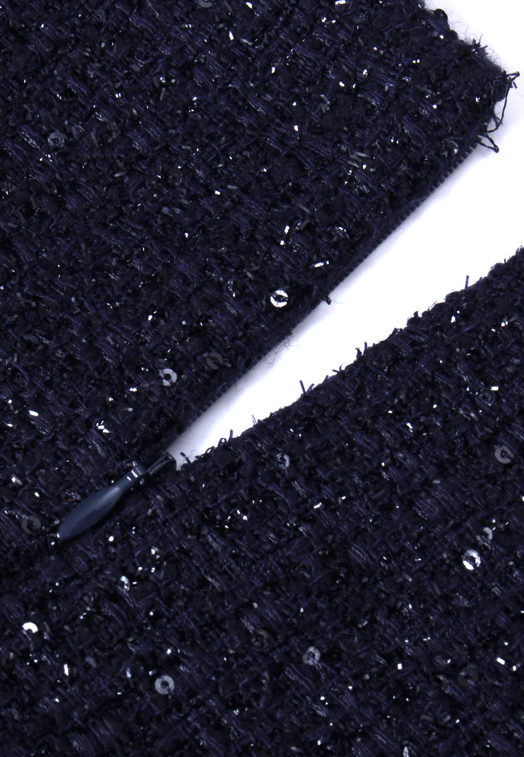 A chic and elegant dress perfect for evening gatherings and cocktail parties. Featuring cap sleeves and a scallop hem, the dark blue hue conveys a calm and sophisticated vibe. The upper body shimmers with interwo...Read More