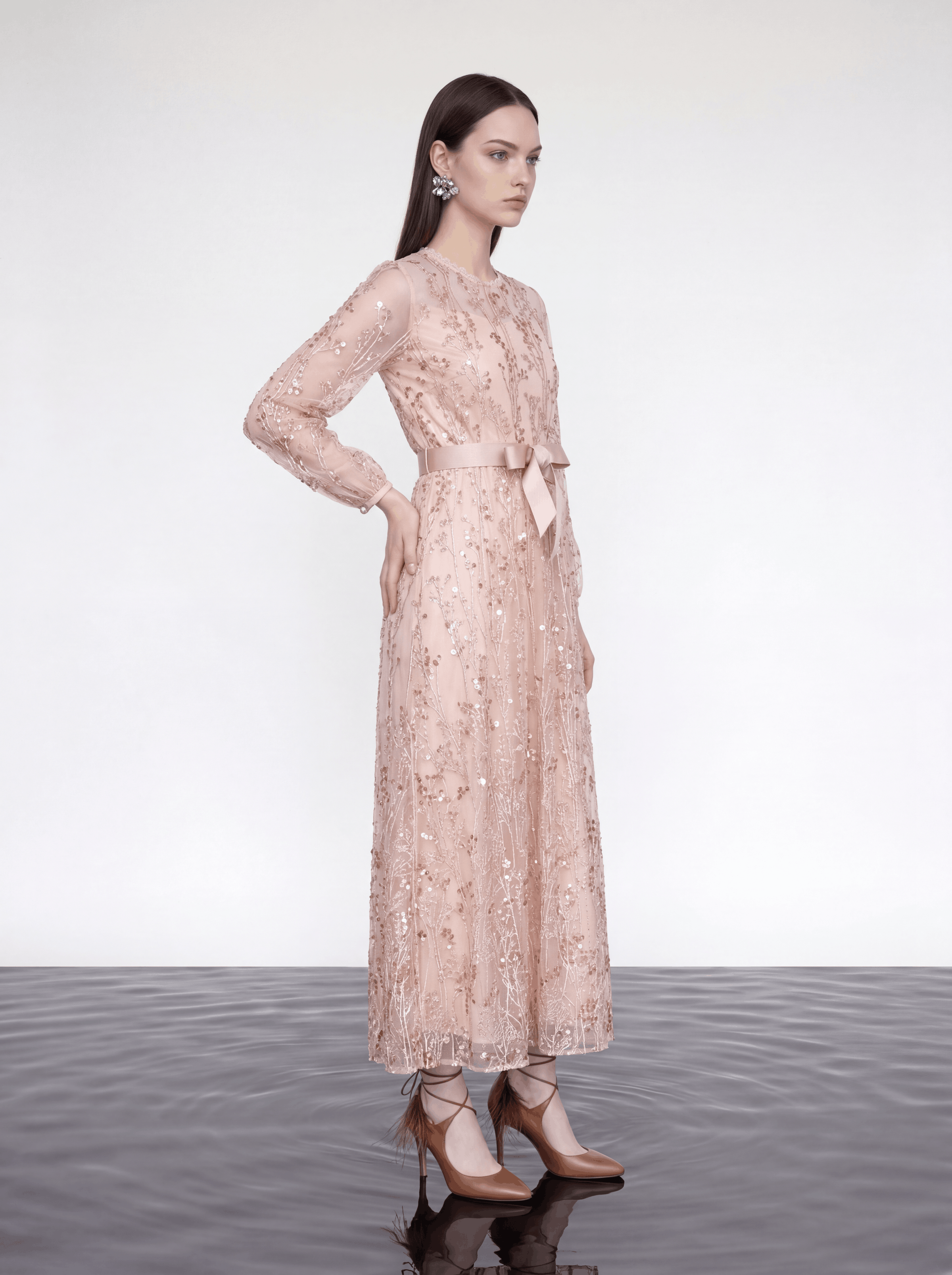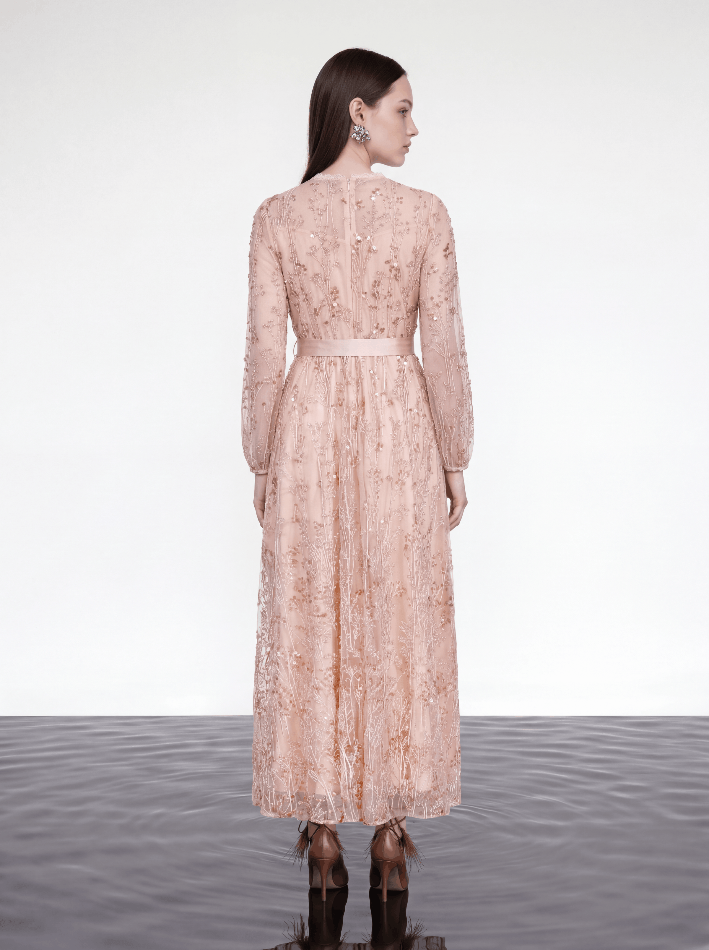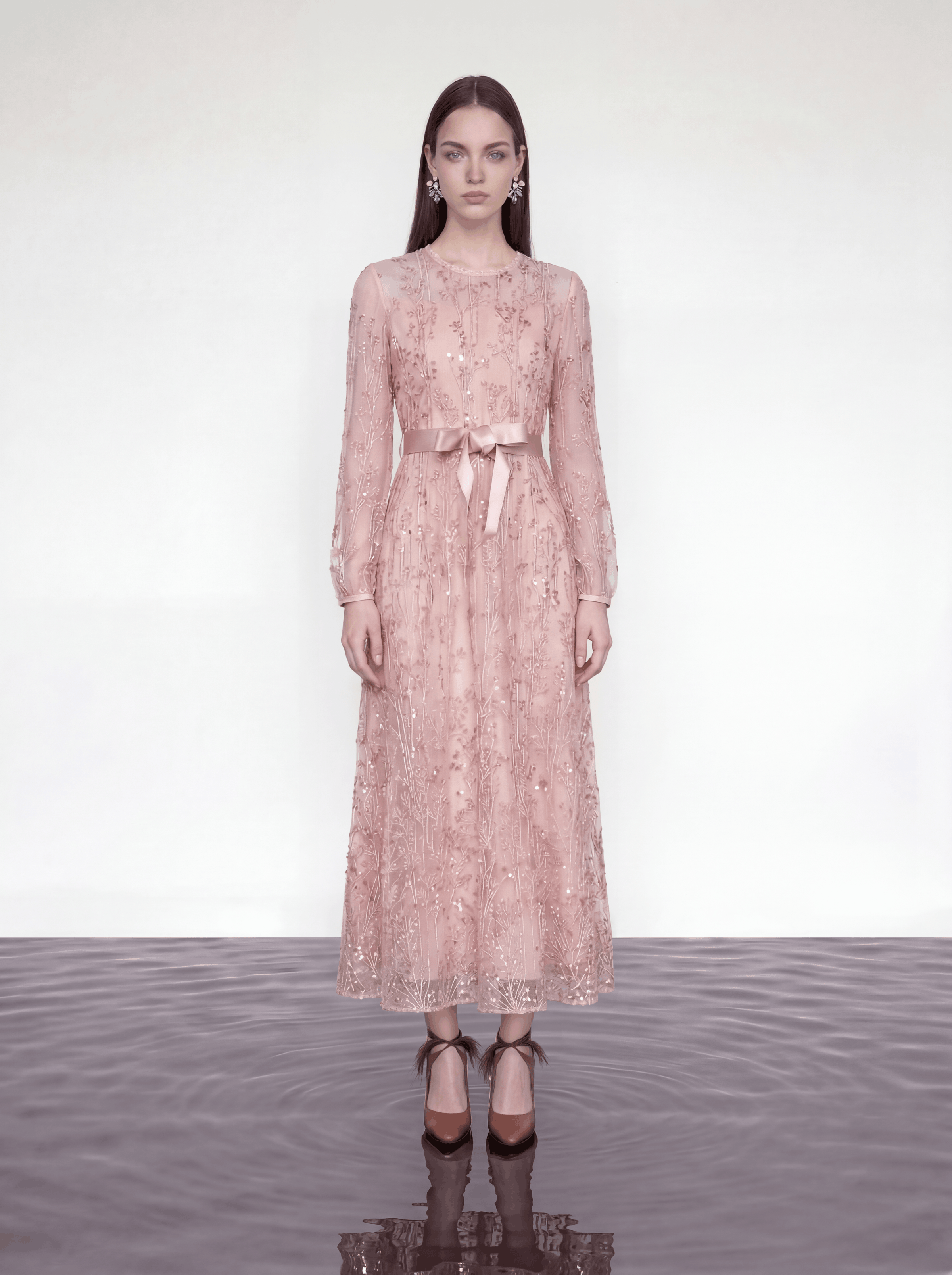 Blush Elegance Embroidered Long Dress