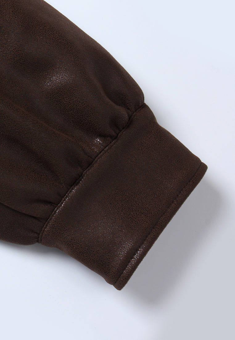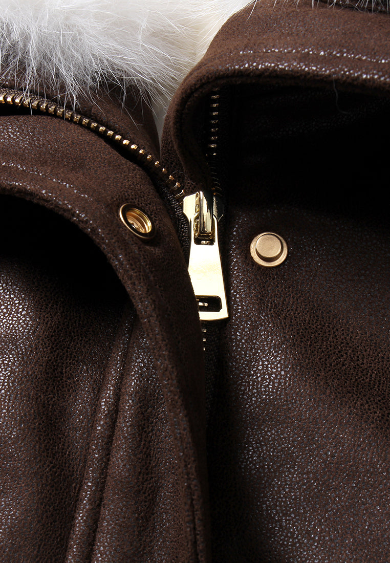 Faux leather jacket with fluffy white fur collar, gold button accents, and tailored silhouette. A bold outerwear piece with alpine elegance—perfect for festive layering and winter refinement.