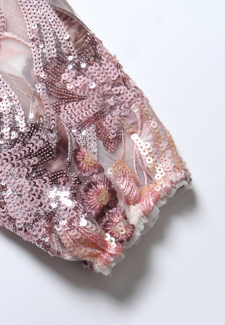 Sheer embroidered dress with floral sequins, fitted bodice, and flared skirt. A romantic silhouette with couture sparkle?€?perfect for gala evenings and festive occasions. ?? ??