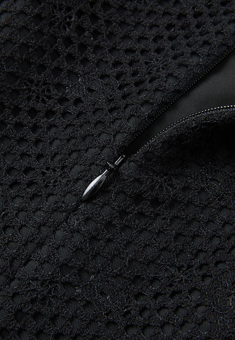 Ruffle-detail Embellished-trim Panelled Mesh Dress