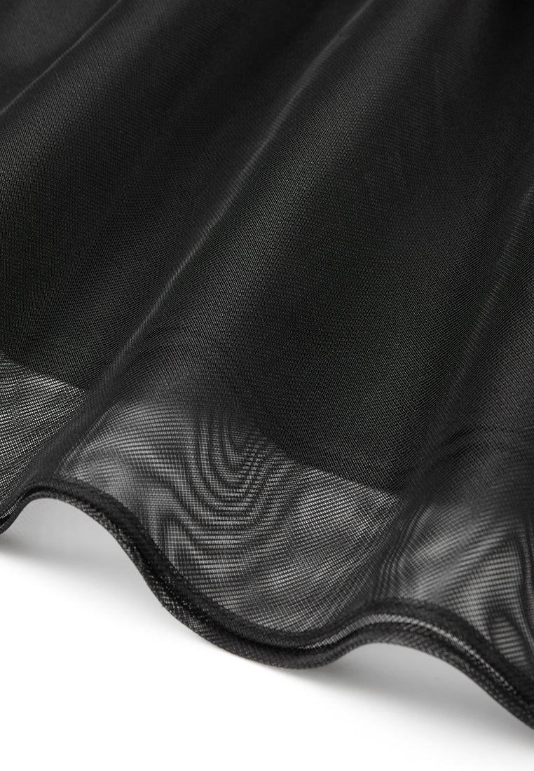 Elasticated-waistband Layered Maxi Mesh Skirt Black