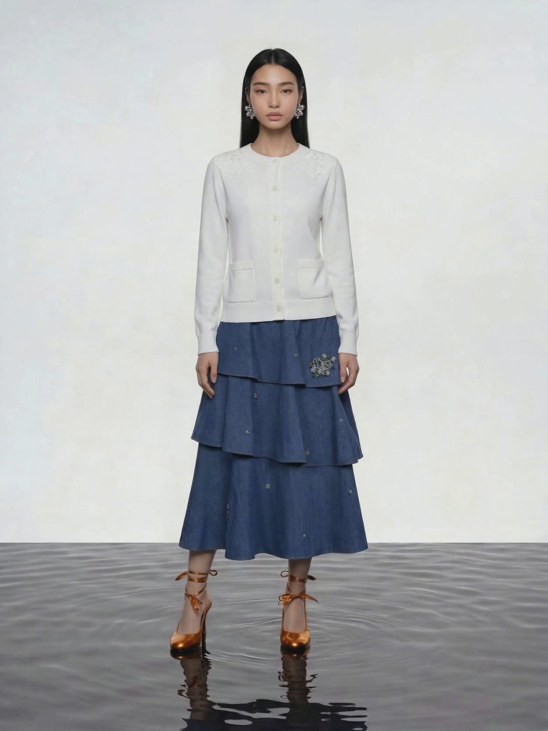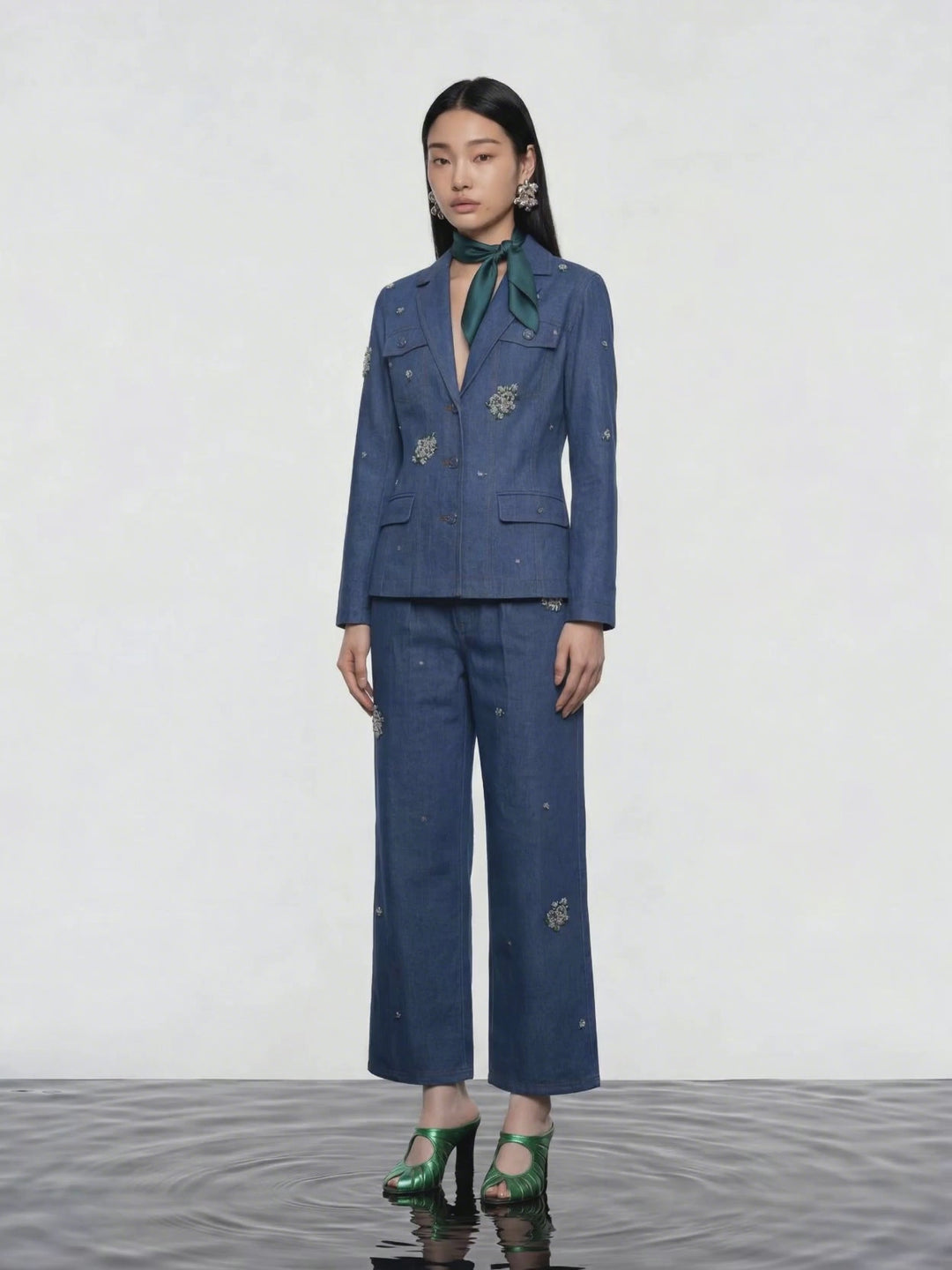 Florals and embellished denim balance lightness and groundedness for every role in her day.