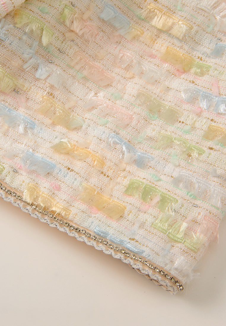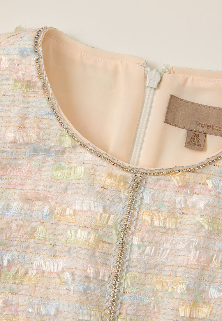 Pleated-detail Frayed-detail Crystal-trim Dress