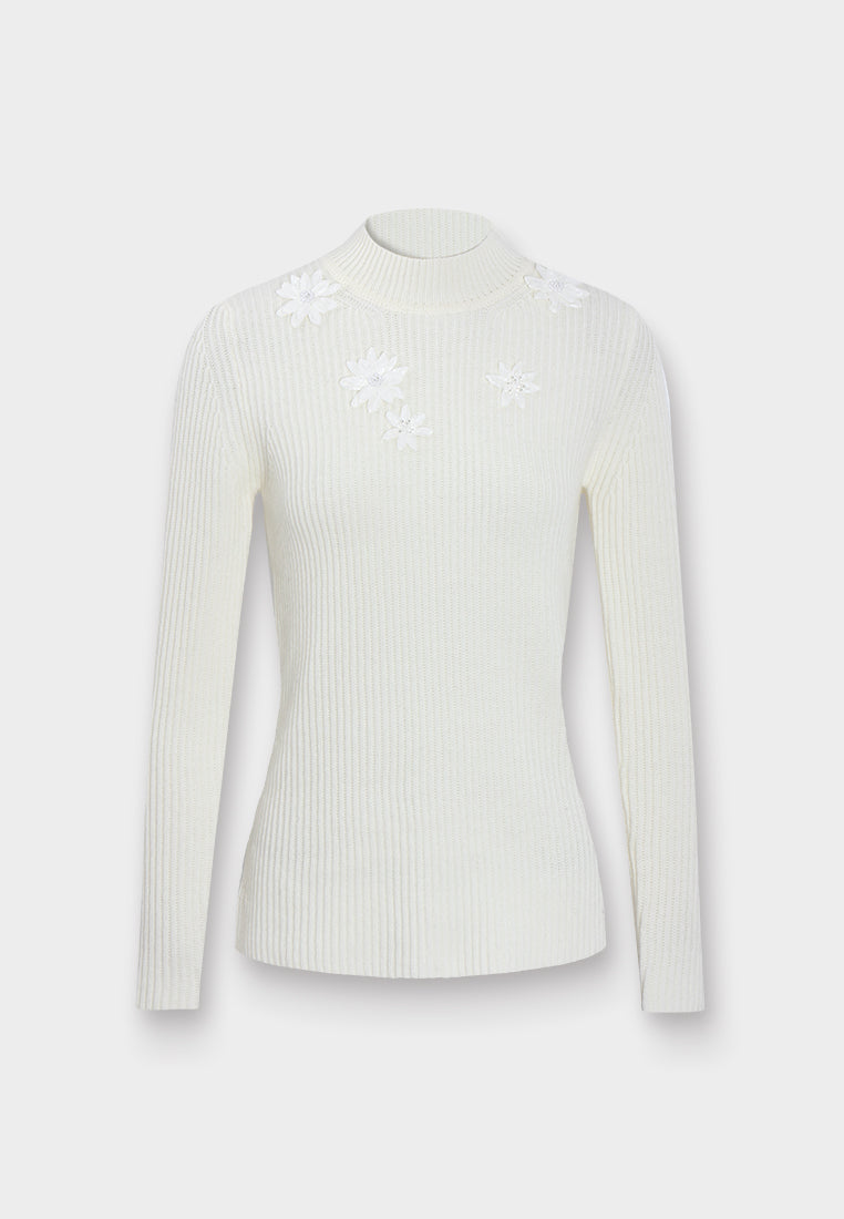 Broderie Fleurie Ribbed Knit Top