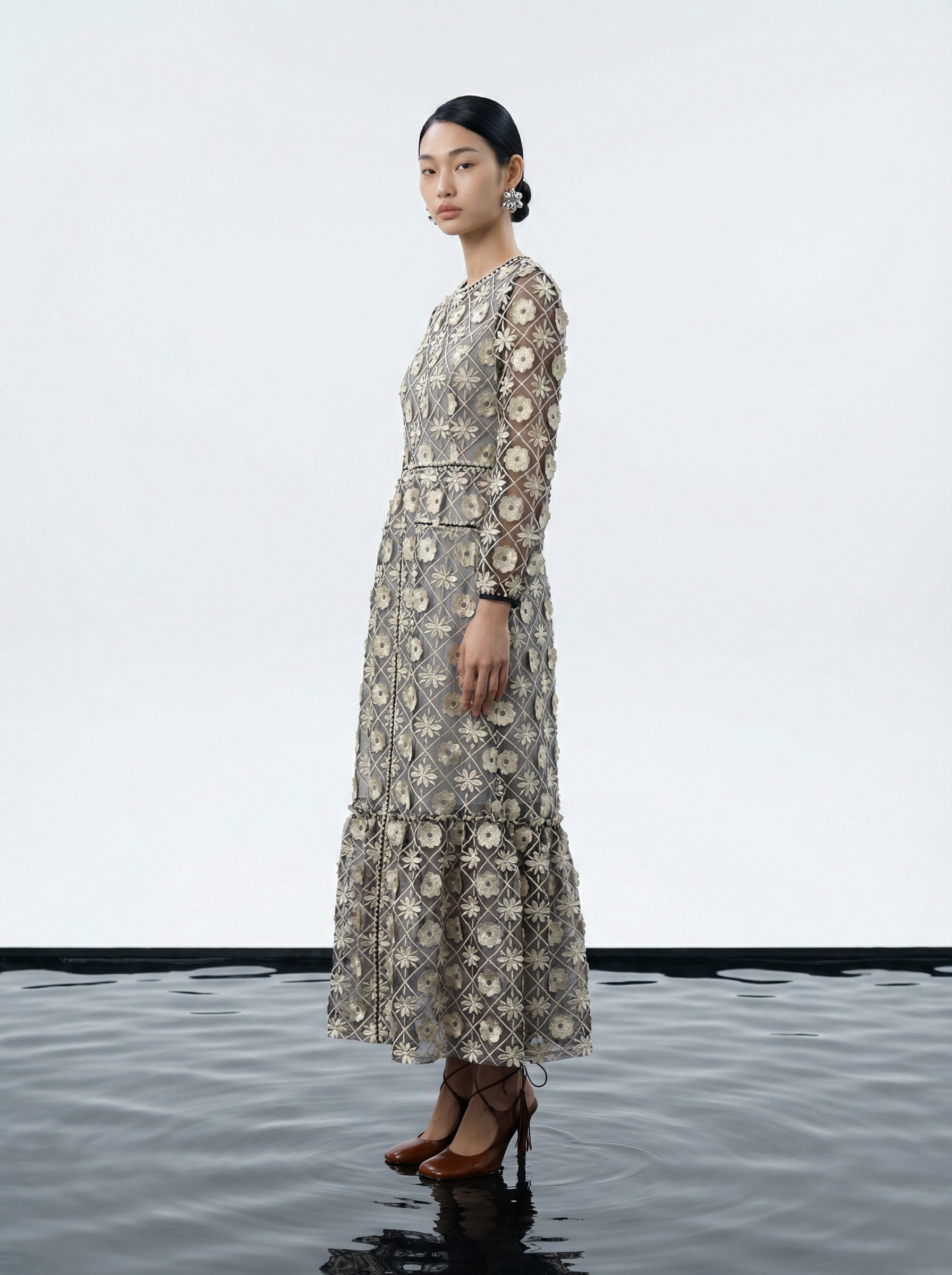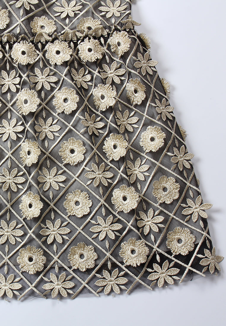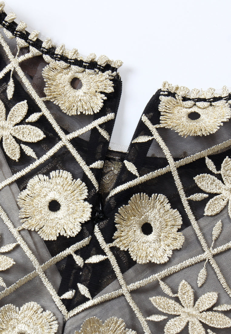 Midnight Bloom Embroidered Gown