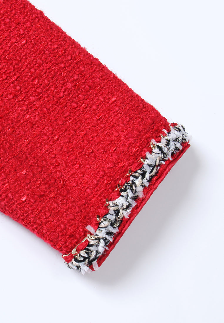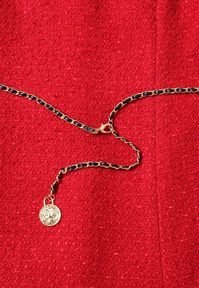 Crimson Medallion Pleated Tweed Dress
