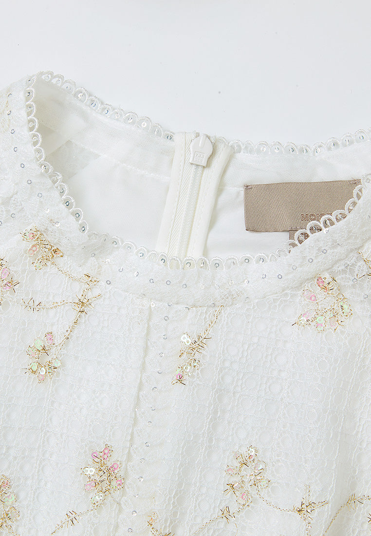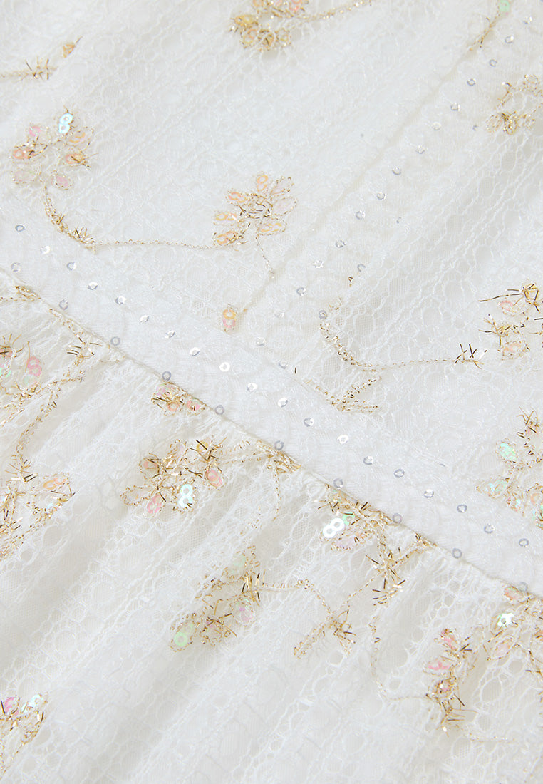 Lace-trim Lurex-detail Mesh-lace Dress